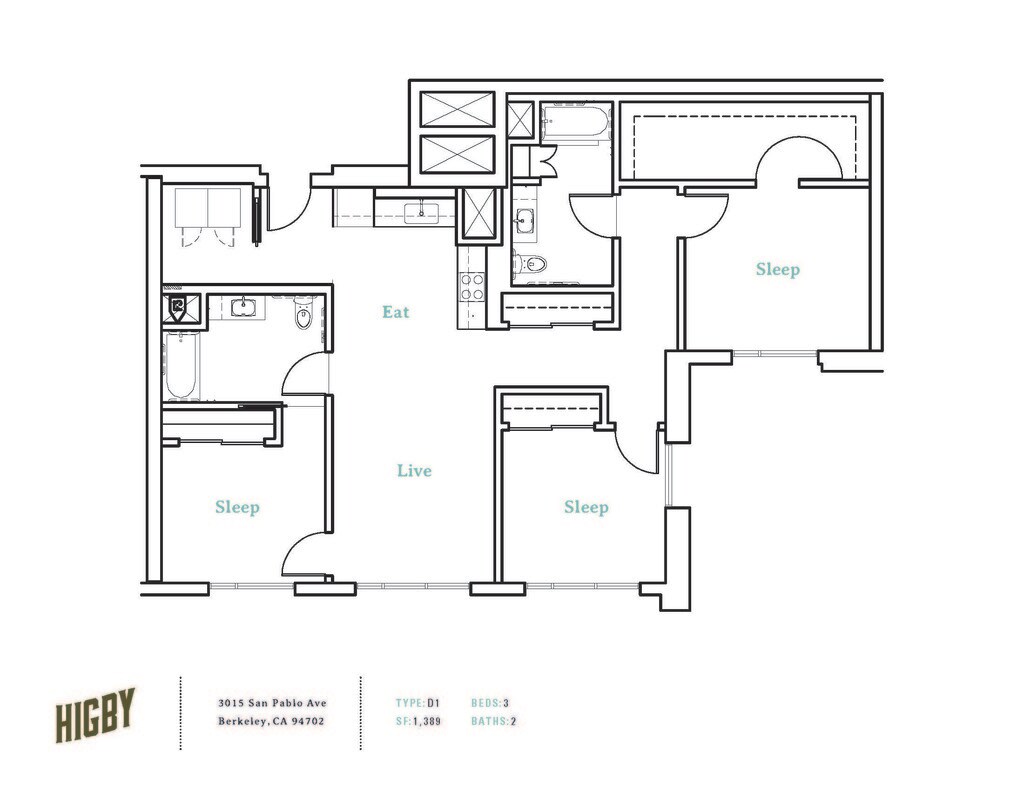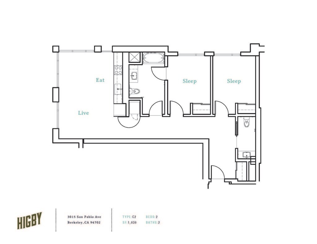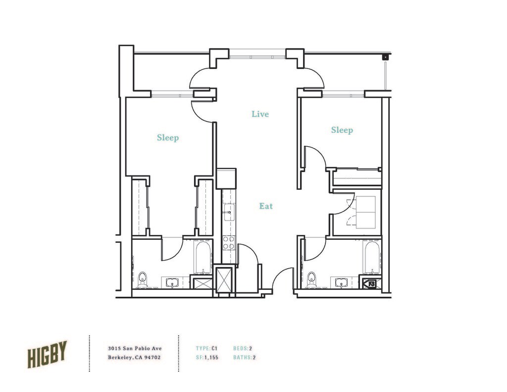 Higby A5 - Floorplan 1 Apartment Unit: 222Apartment Model: Higby A5$2,6761 Bedroom, 1 Bath, 868 sq ftAvailable NowHigby B1