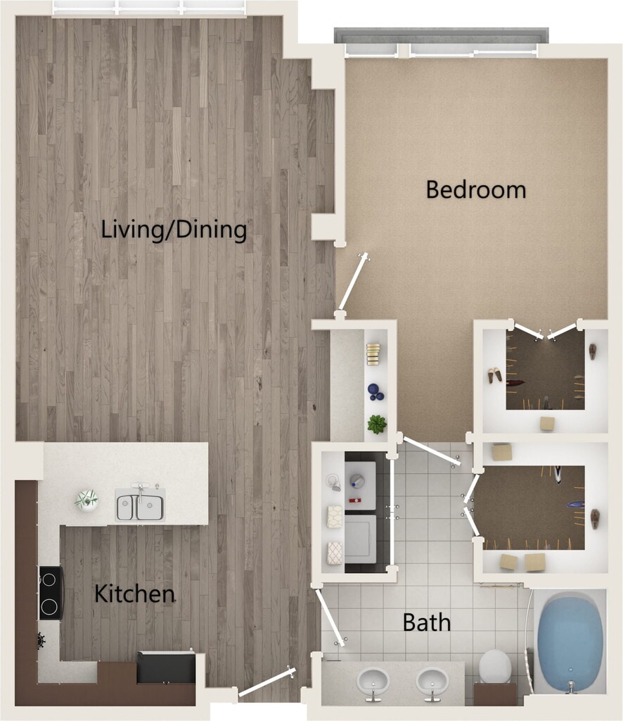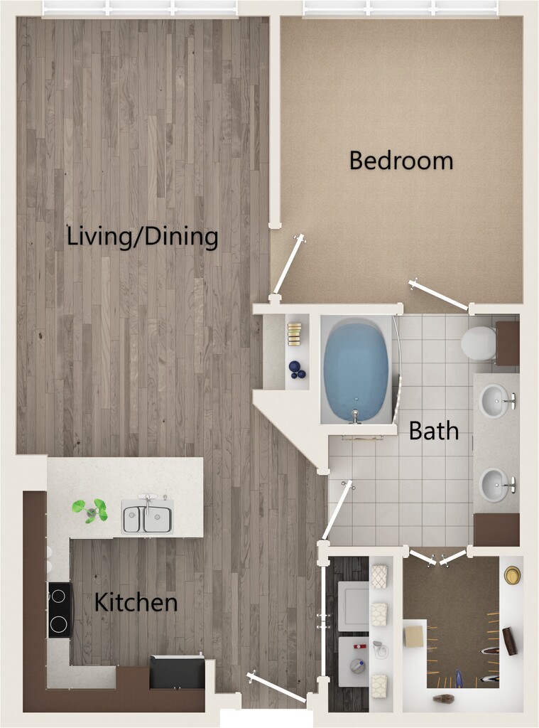 Studio, 1 Bath, 544-551 sq ftAvailable NowModel Gallery