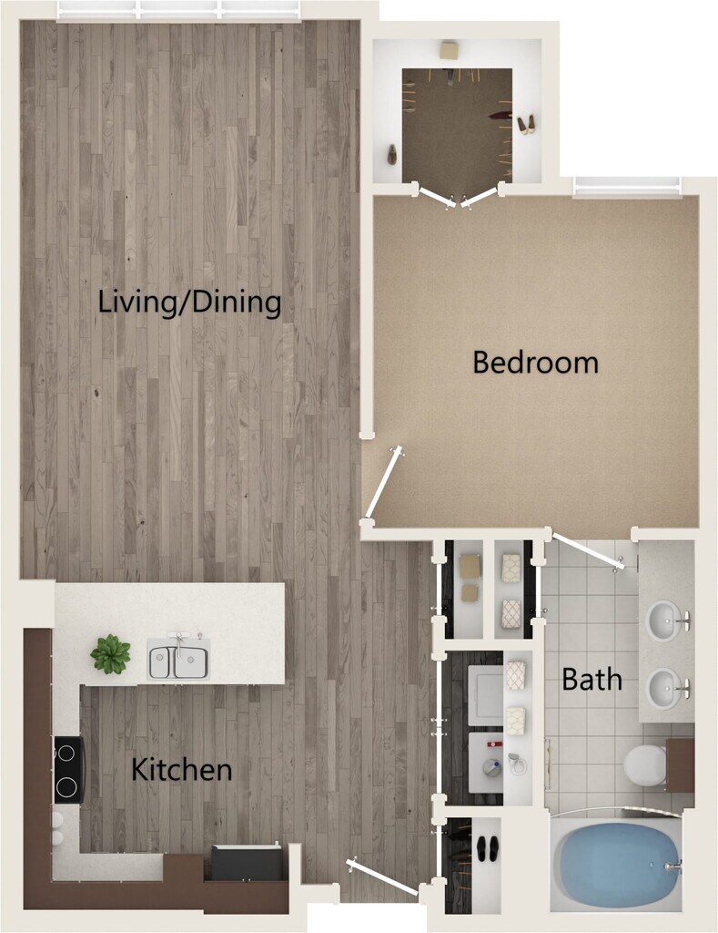 1 Bed, 1 Bath, 702 sq ftAvailable NowModel Gallery