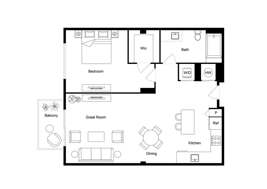 Studio, 1 Bath, 597 sq ftAvailable NowModel Gallery