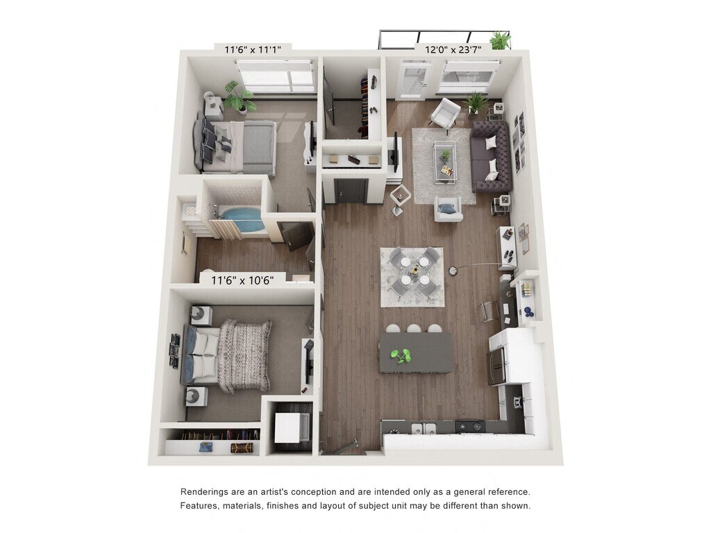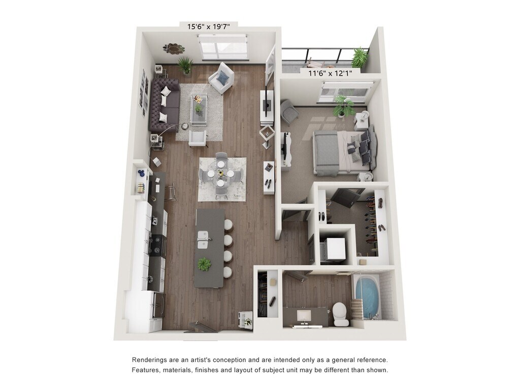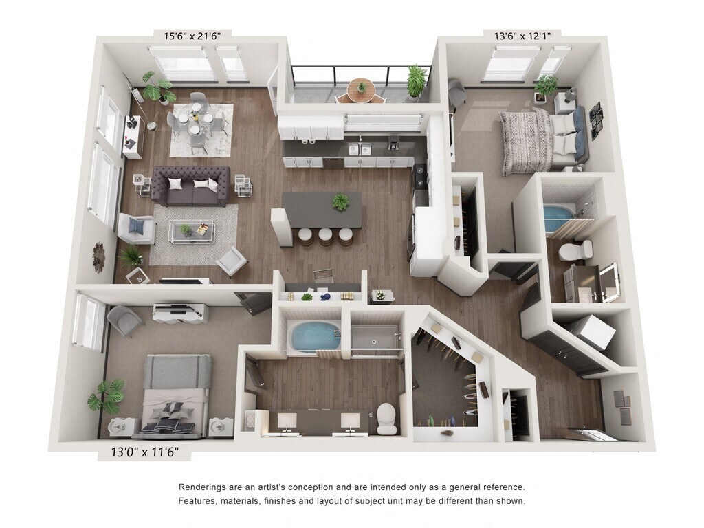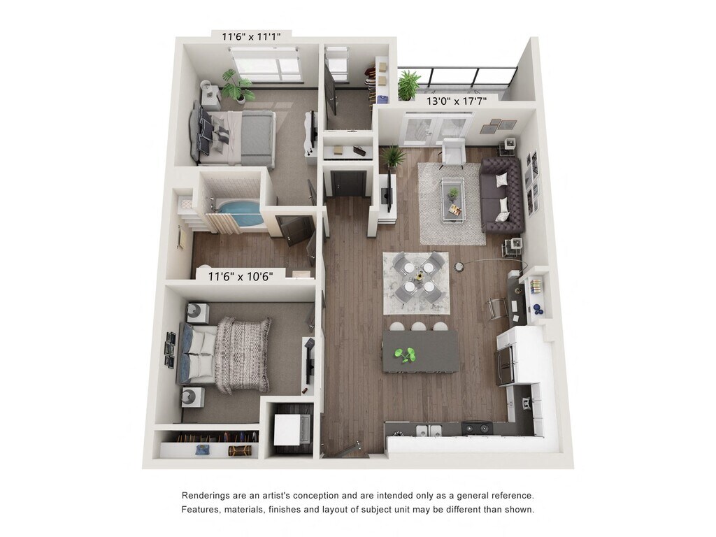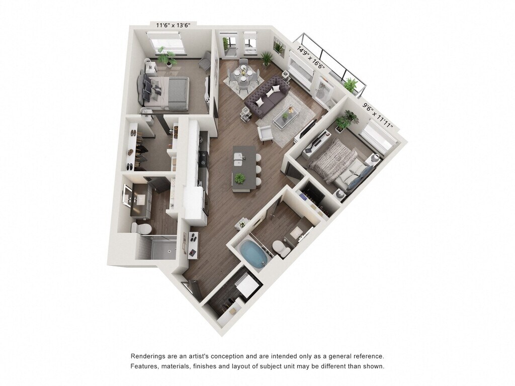 1 Bed, 1 Bath, 621 sq ftAvailable NowModel Gallery