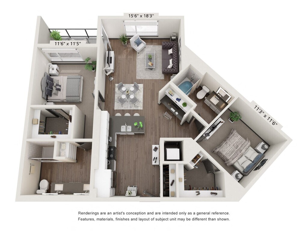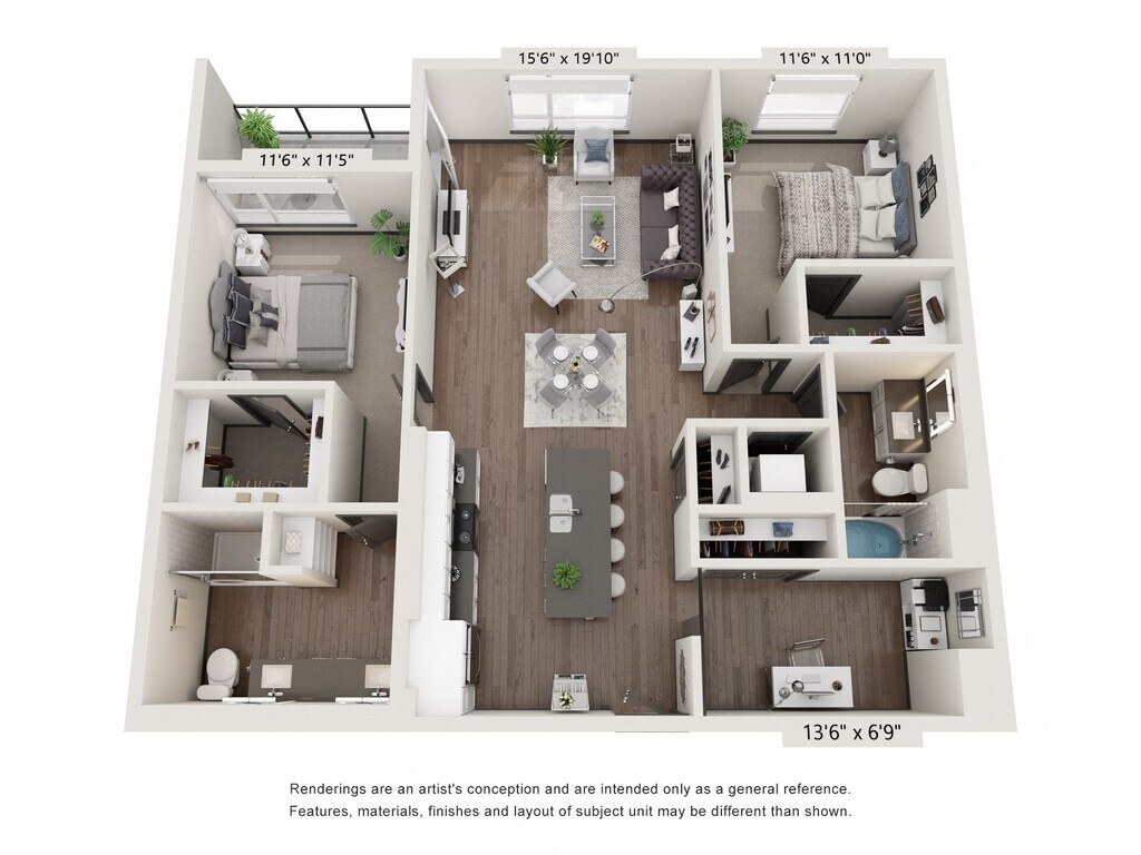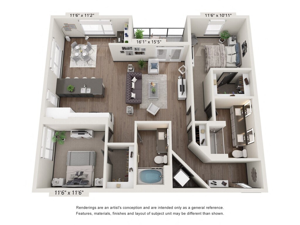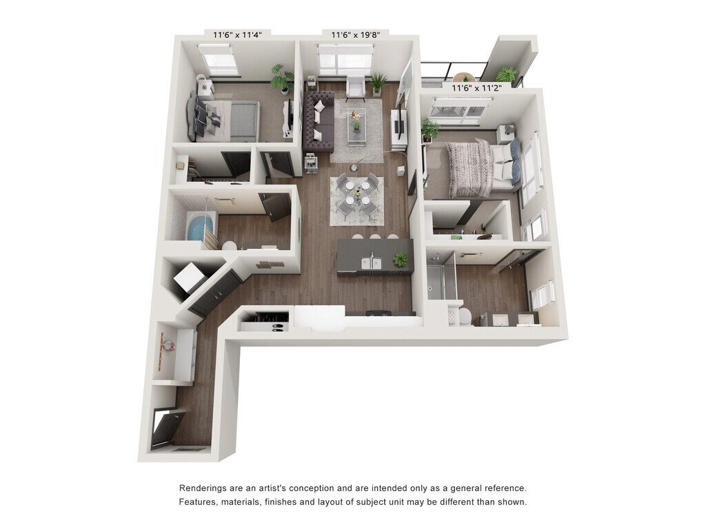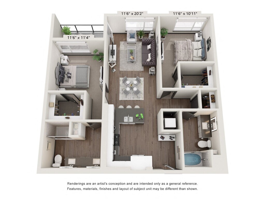 1 Bed, 1 Bath, 621 sq ftAvailable NowModel Gallery