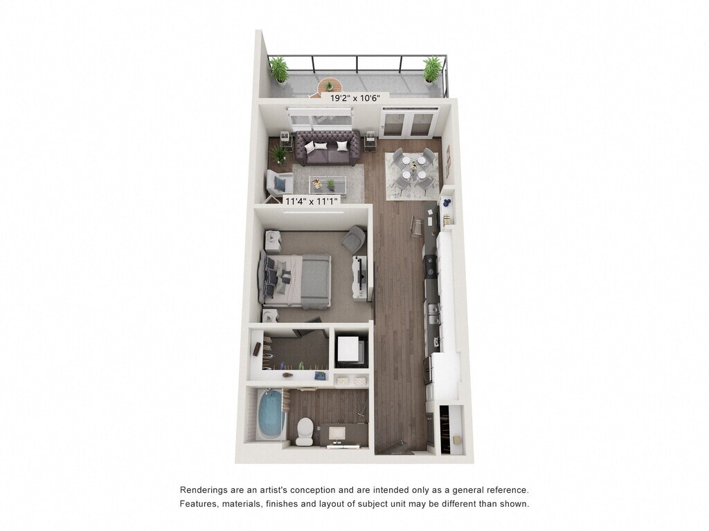 Studio, 1 Bath, 472 sq ftAvailable NowModel Gallery