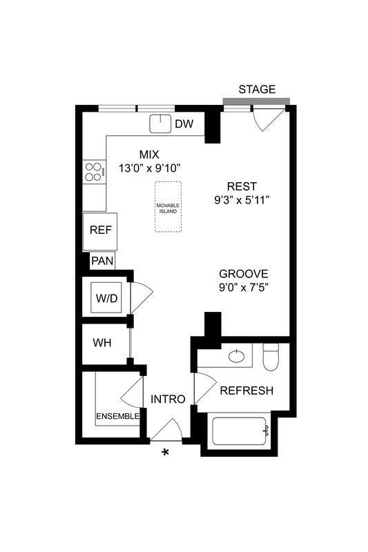 Studio, 1 Bath, 480 sq ftAvailable NowModel Gallery