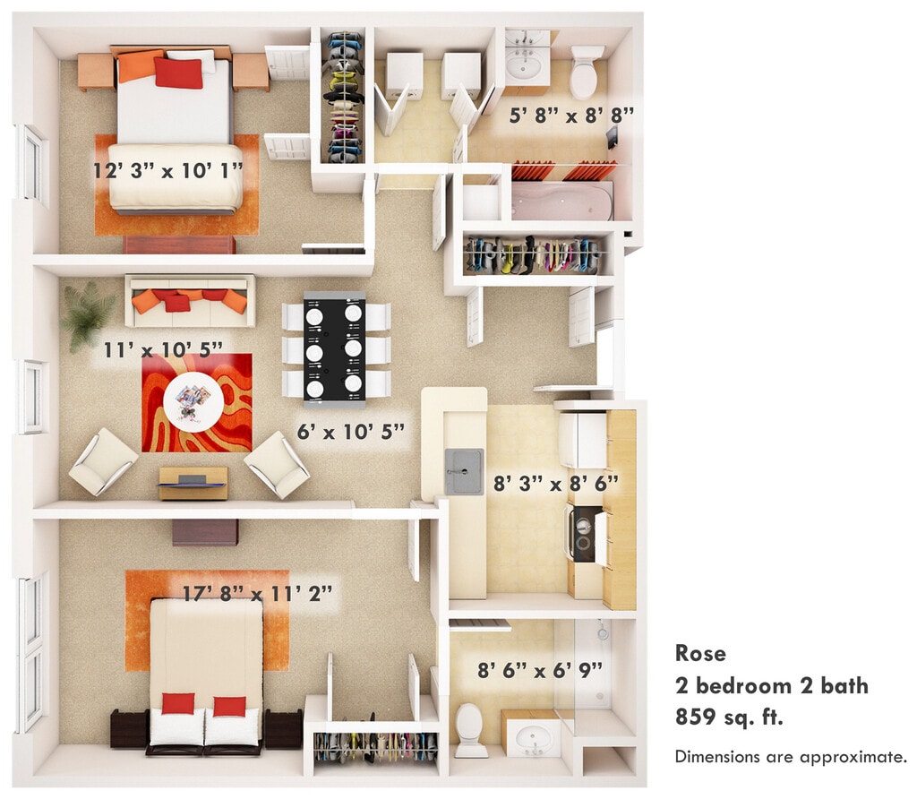 Apartment Model: ROSE$1,8112 Bedroom, 2 Bath, 859 sq ftAvailable February 22, 2026![]()