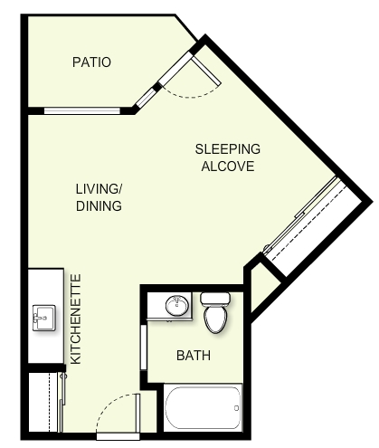 - Studio- Floorplan A5Studio, 1 Bath, 325 sq ft- Availability Details- Availability Date - Unit - Sq Ft - Unavailable - A5 - 325 sq ft - Model Amenities and Features- Features- Cable Ready
