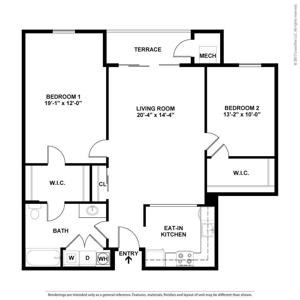 2 Bedroom Craftsman - Floorplan 1 ![]()