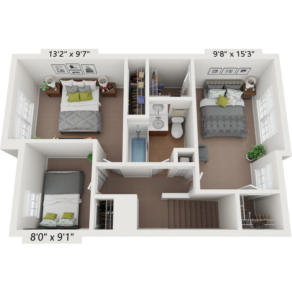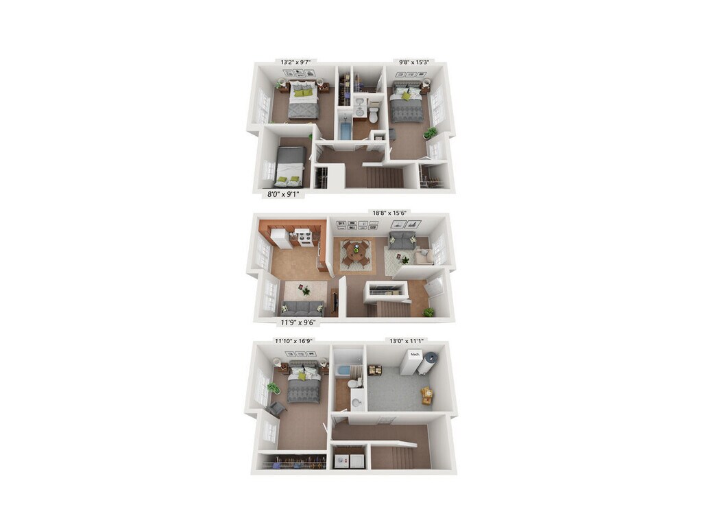 3 Beds, 2 Baths, 1118-1313 sq ftAvailable Nov 15Model Gallery