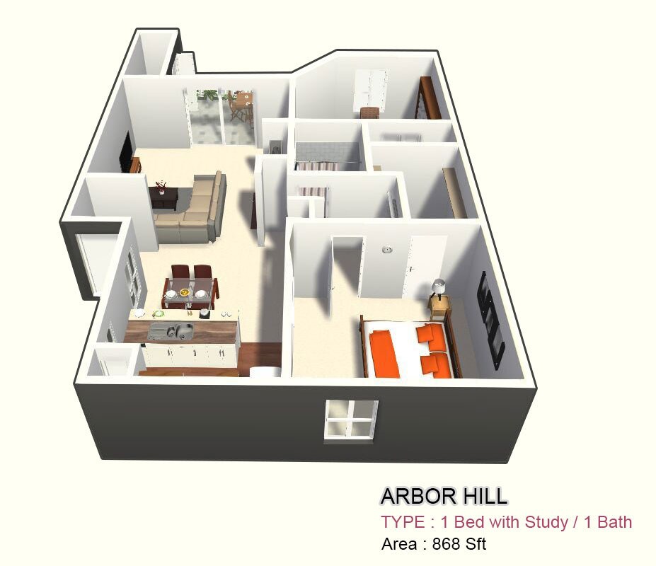 1 Bed, 1 Bath, 868 sq ftLargest 1 BedroomThis is the largest 1 Bedroom at this PropertyModel Gallery