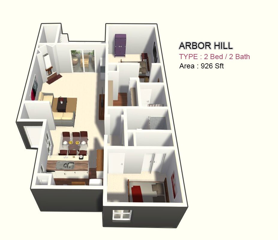 2 Beds, 2 Baths, 926 sq ftModel Gallery