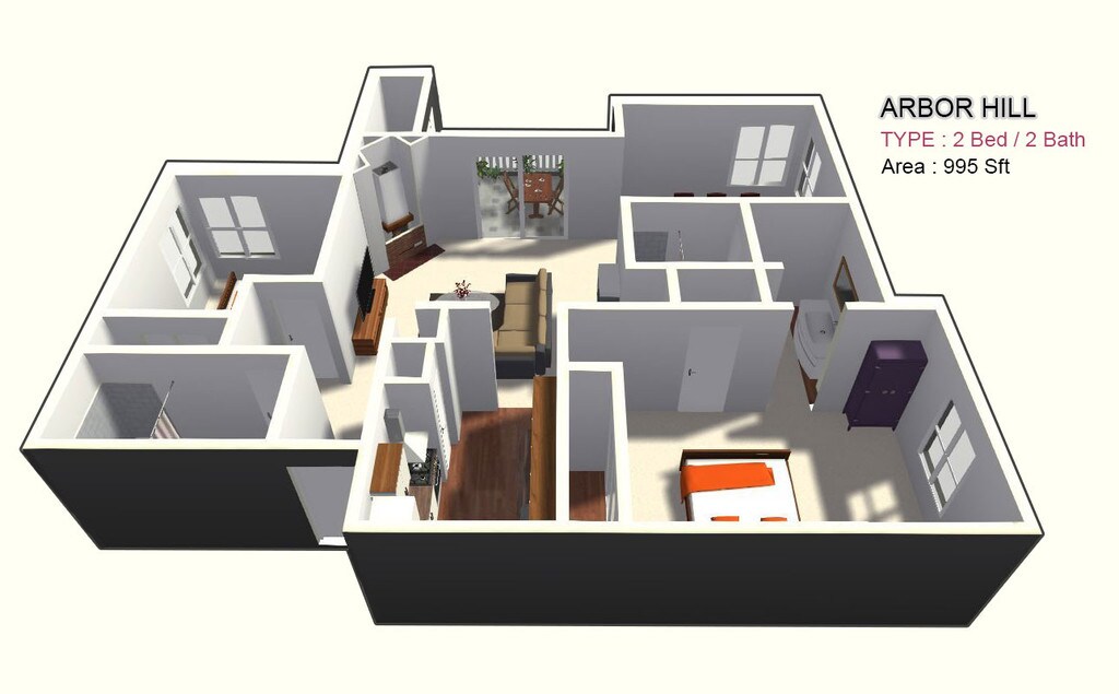 2 Beds, 2 Baths, 995 sq ftModel Gallery