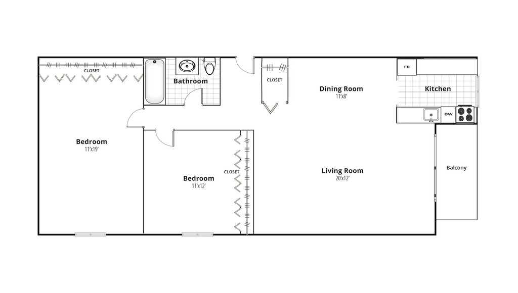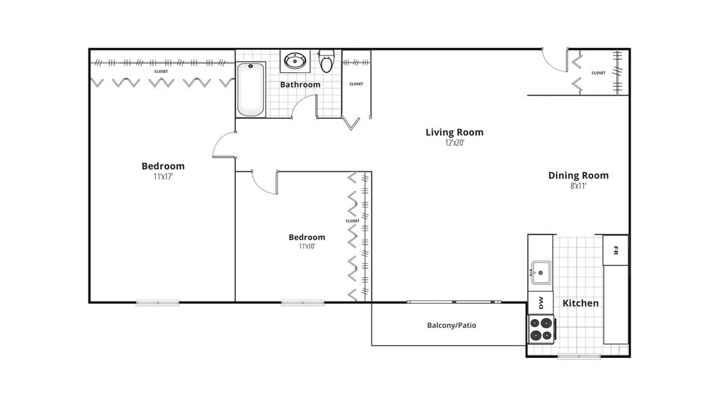 Apartment Model: Two Bedroom XLCall For Rates2 Bedroom, 1 Bath, 900 sq ftUnavailableTwo Bedroom XL - Floorplan 1