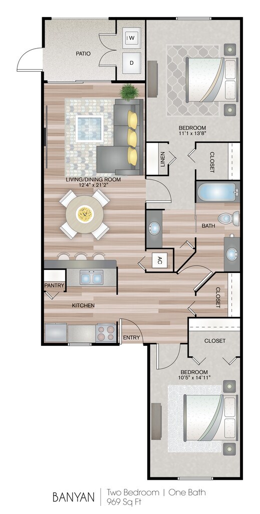 2 Beds, 1 Bath, 969 sq ftAvailable NowModel Gallery