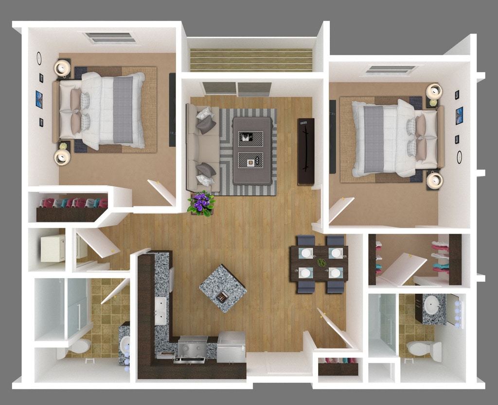 2 Beds, 2 Baths, 923 sq ftModel Gallery