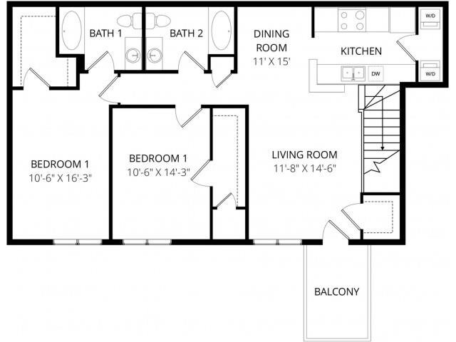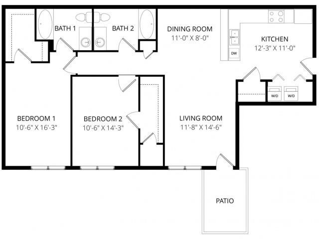 Apartment Model: Emerald2 Bedroom, 2 Bath, 1125 sq ftAvailable October 29, 2025Emerald - Floorplan 1 Apartment Unit: 2612Apartment Model: Emerald2 Bedroom, 2 Bath, 1125 sq ftAvailable October 29, 2025Ruby