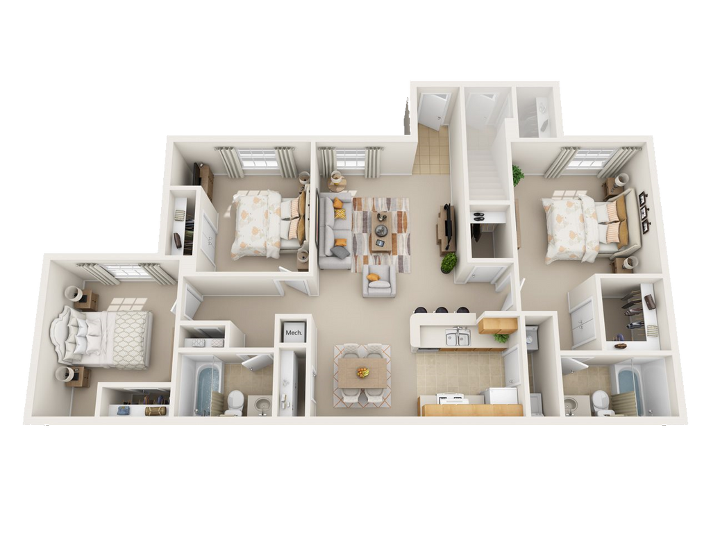 Apartment Model: Four BedroomCall For Rates4 Bedroom, 3 Bath, 1459 sq ftUnavailable![]()