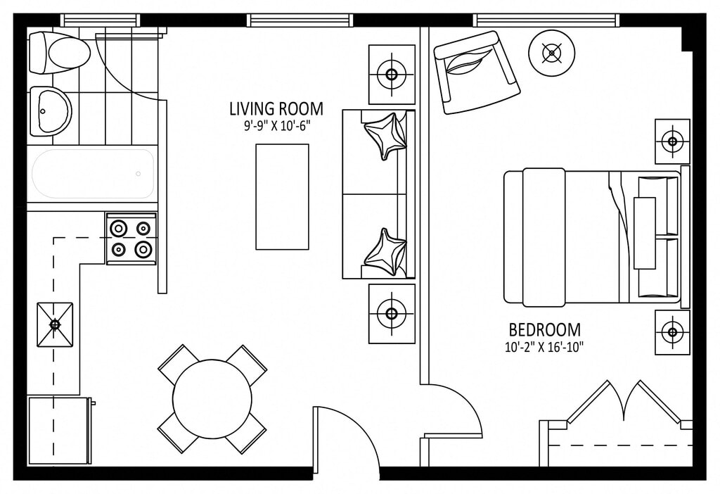 Apartment Model: 1040 Hollington - Plan A$1,499Studio, 1 Bath, 314 sq ftAvailable NowFloorplansPhotos![]()