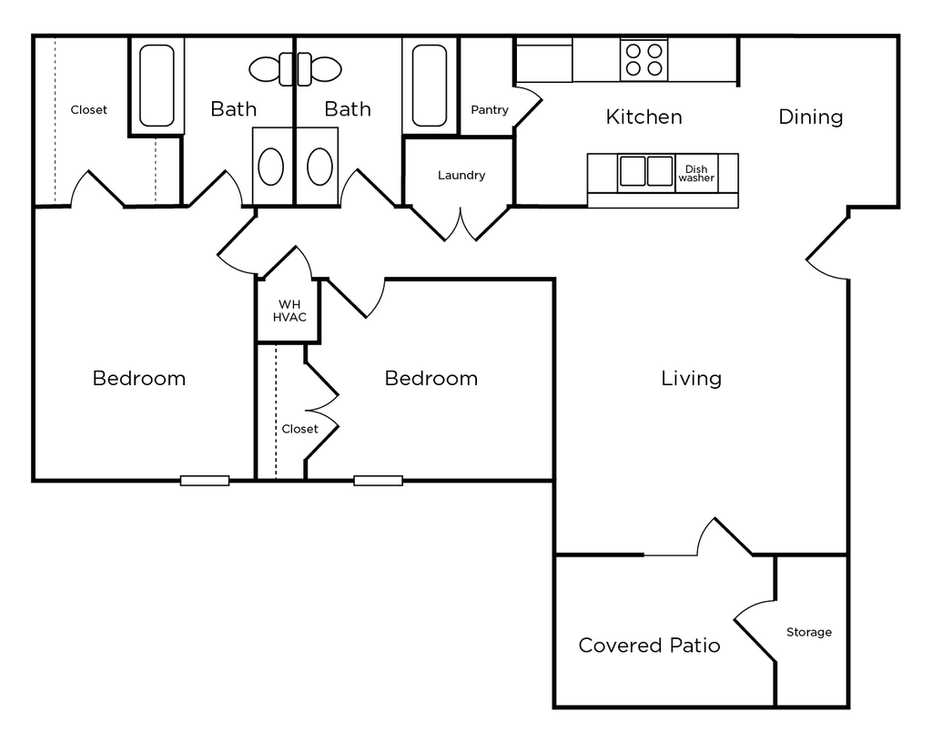 2 Beds, 2 Baths, 1145 sq ftAvailable NowLargest 2 BedroomThis is the largest 2 Bedroom at this PropertyModel Gallery