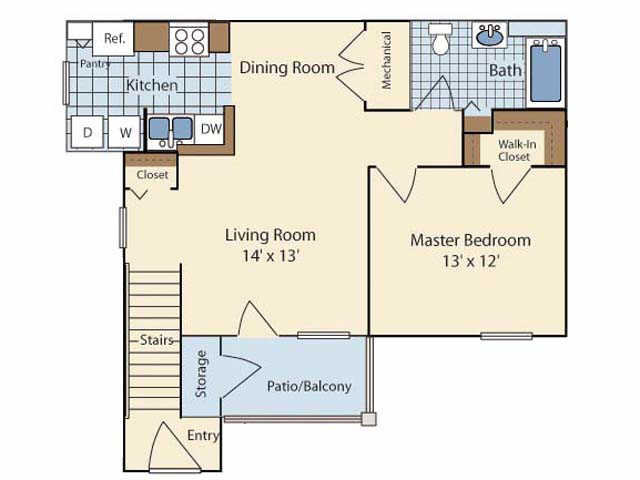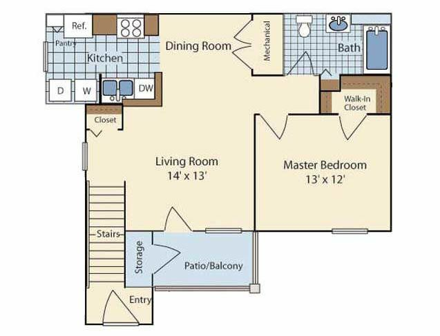 1BR Downstairs - Floorplan 1 1BR Upstairs