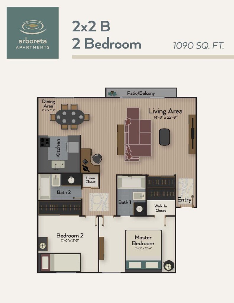2 Beds, 2 Baths, 1090 sq ftPlus FeesAvailable NowModel Gallery