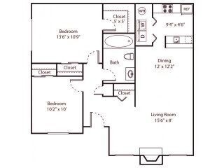 1 Bedroom 1 Bath - Floorplan 1 2 Bedrooms