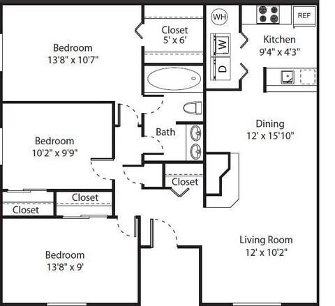 Apartment Model: 3 Bedroom 1 BathCall For Rates3 Bedroom, 1 Bath, 1050 sq ftUnavailable![]()