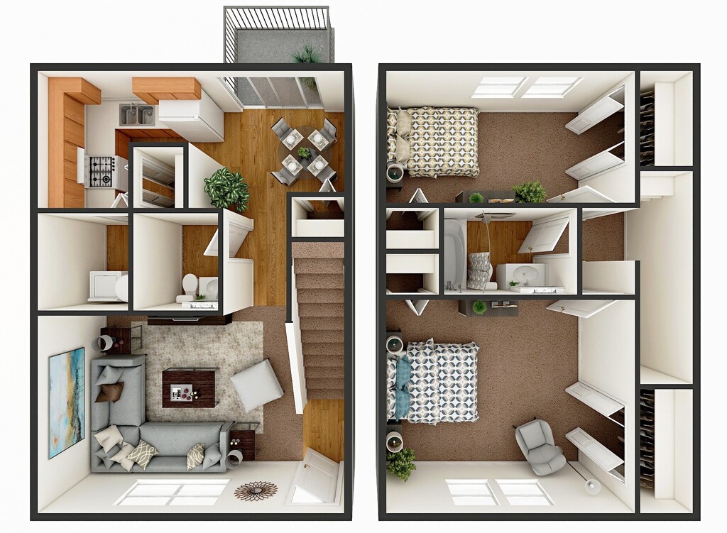 2 Beds, 1.5 Baths, 1100 sq ftModel Gallery