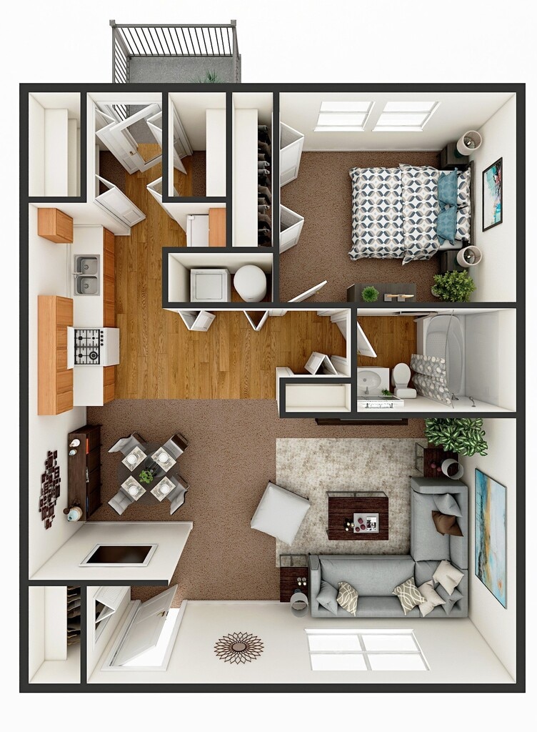 1 Bed, 1 Bath, 650 sq ftModel Gallery