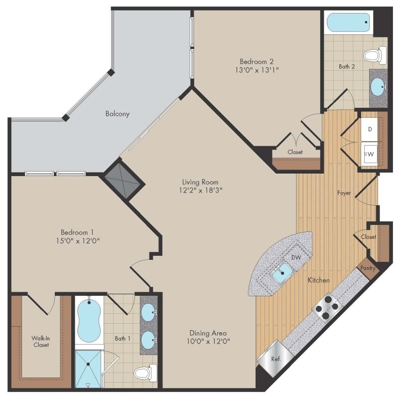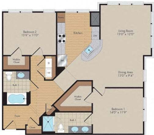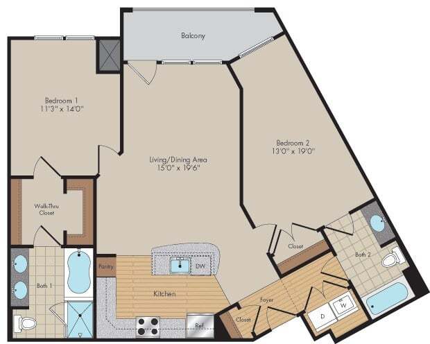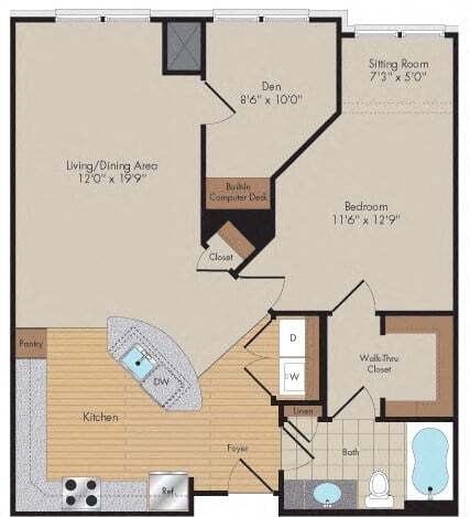1 Bed, 1 Bath, 753 sq ftAvailable NowModel Gallery