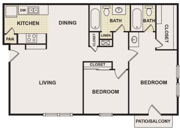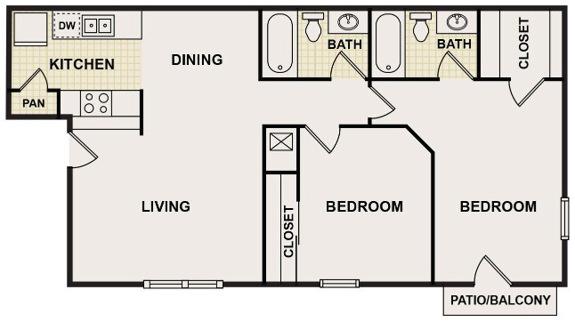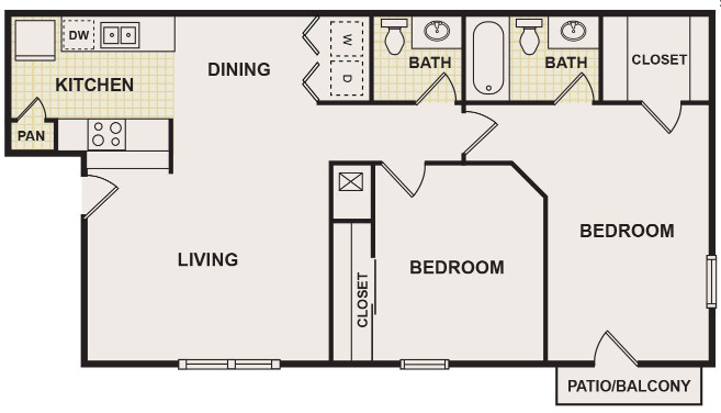 2 Beds, 2 Baths, 860 sq ftModel Gallery