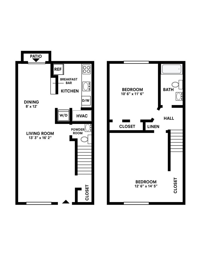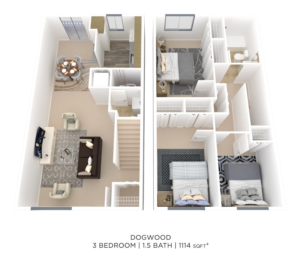 2 Beds, 1.5 Baths, 990 sq ftAvailable NowModel Gallery