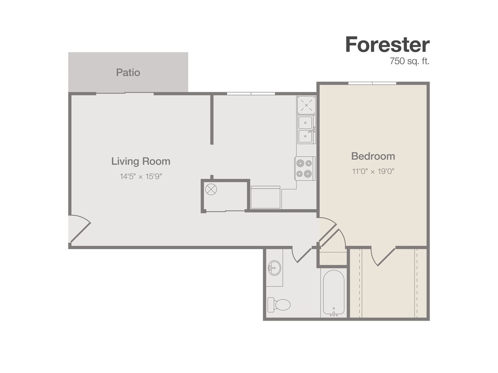 Apartment Model: ForesterFrom $1,3271 Bedroom, 1 Bath, 750 sq ftAvailable NowFloorplansPhotosForester - Image 1 Forester - Image 2 Forester - Image 3 Forester - Image 4 Forester - Image 5 Forester - Image 6 Forester - Floorplan 7 Forester - Floorplan 8 2 Bedrooms