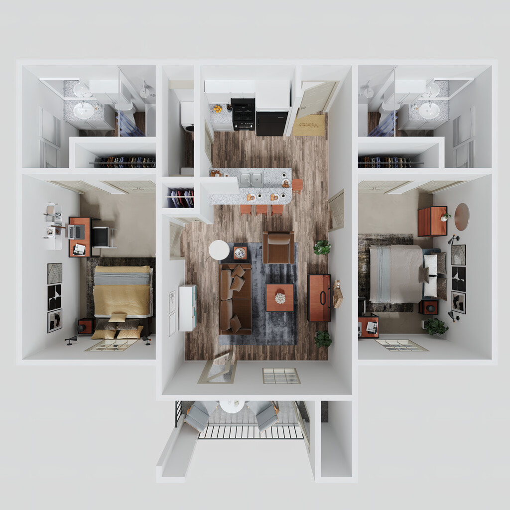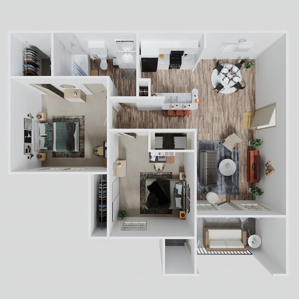 2 Beds, 2 Baths, 491 sq ftAvailable NowModel Gallery