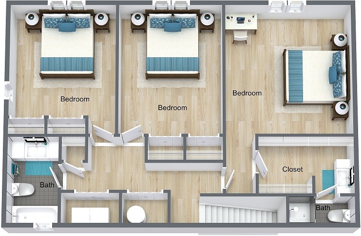 3 Bed | 2.5 Bath Townhome - Floorplan 2 4 Bedrooms