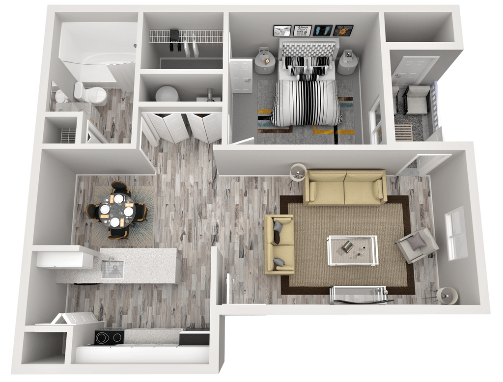 1 Bed, 1 Bath, 750 sq ftAvailable NowLargest 1 BedroomThis is the largest 1 Bedroom at this PropertyModel Gallery