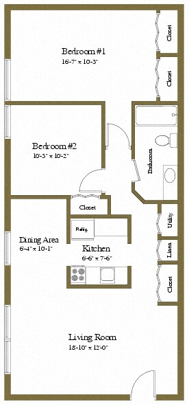 Apartment Model: 2 Bedroom 1 Bath - Downing Floor PlanFrom $1,2462 Bedroom, 1 Bath, 1012 sq ftAvailable February 1, 2026![]()