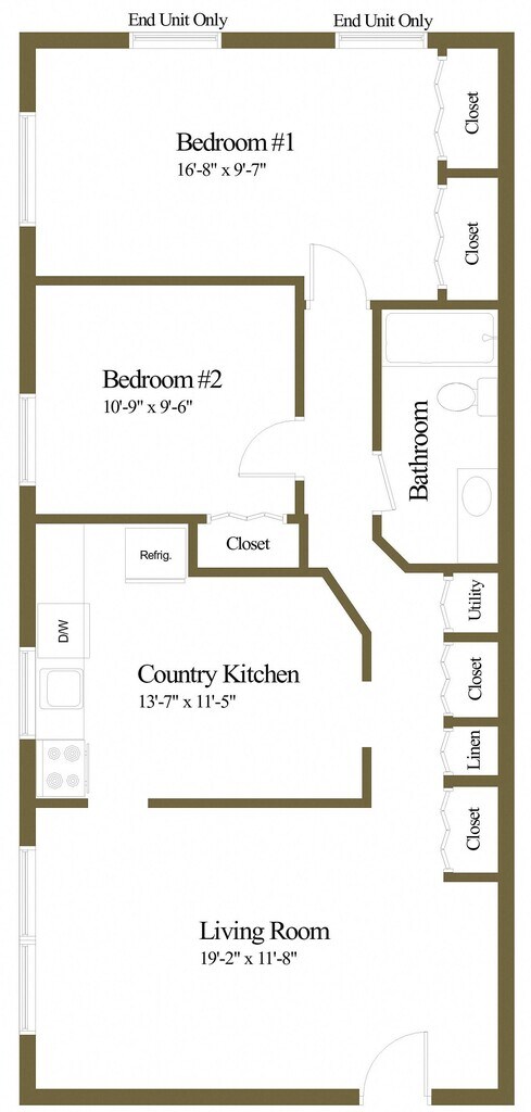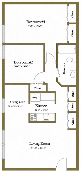 2 Bedroom 1 Bath - Carlton Floor Plan