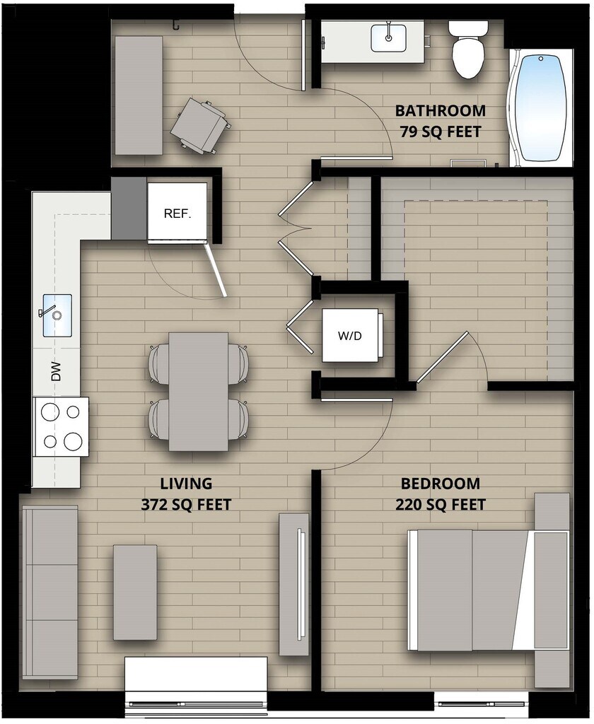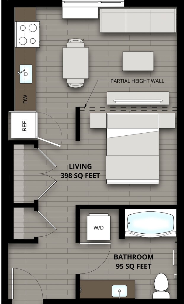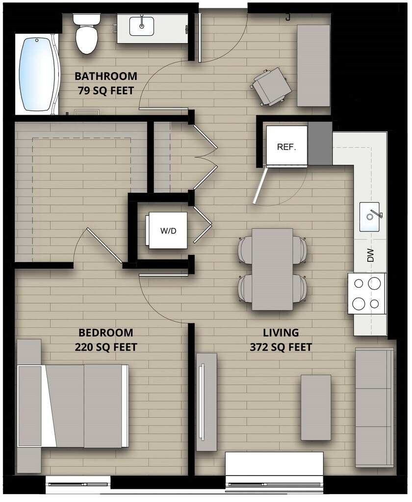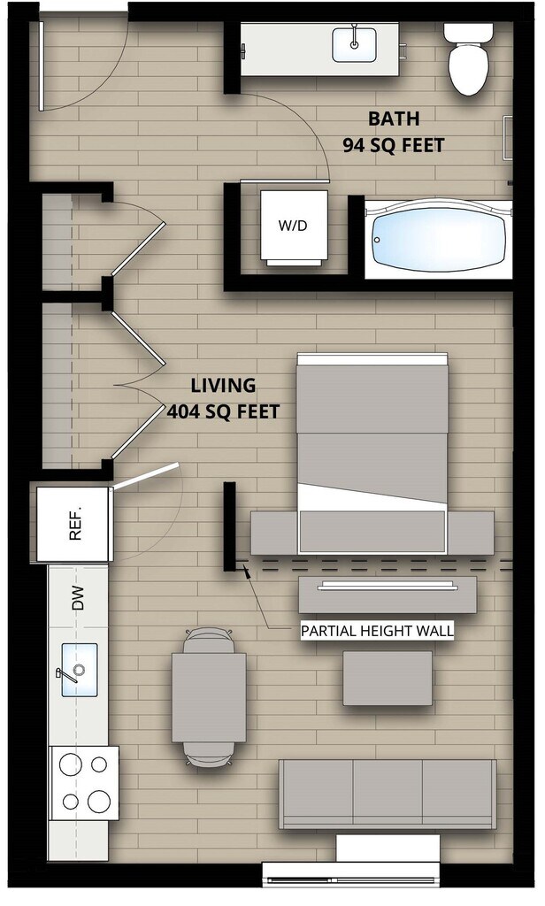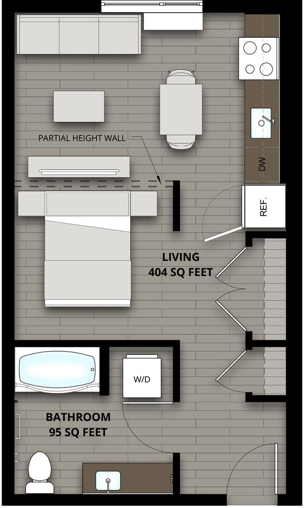 W: Studio A - Floorplan 1 Apartment Unit: 510-WApartment Model: W: Studio A$1,615Studio, 1 Bath, 493 sq ftAvailable December 23, 2025E: Studio B