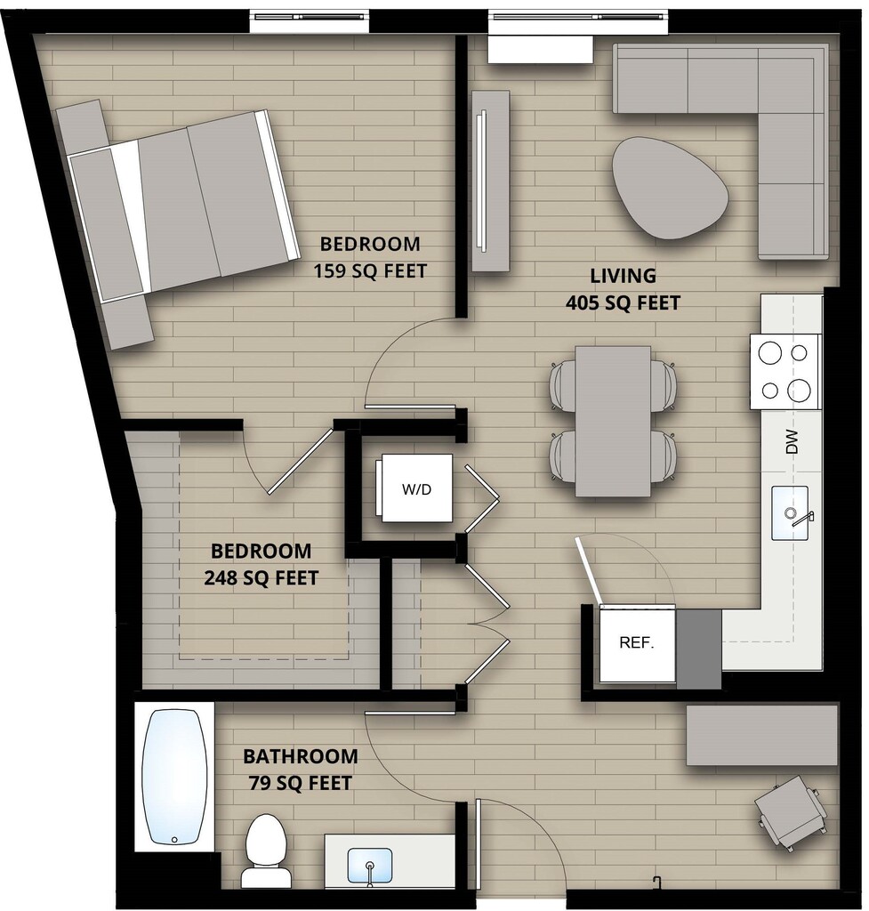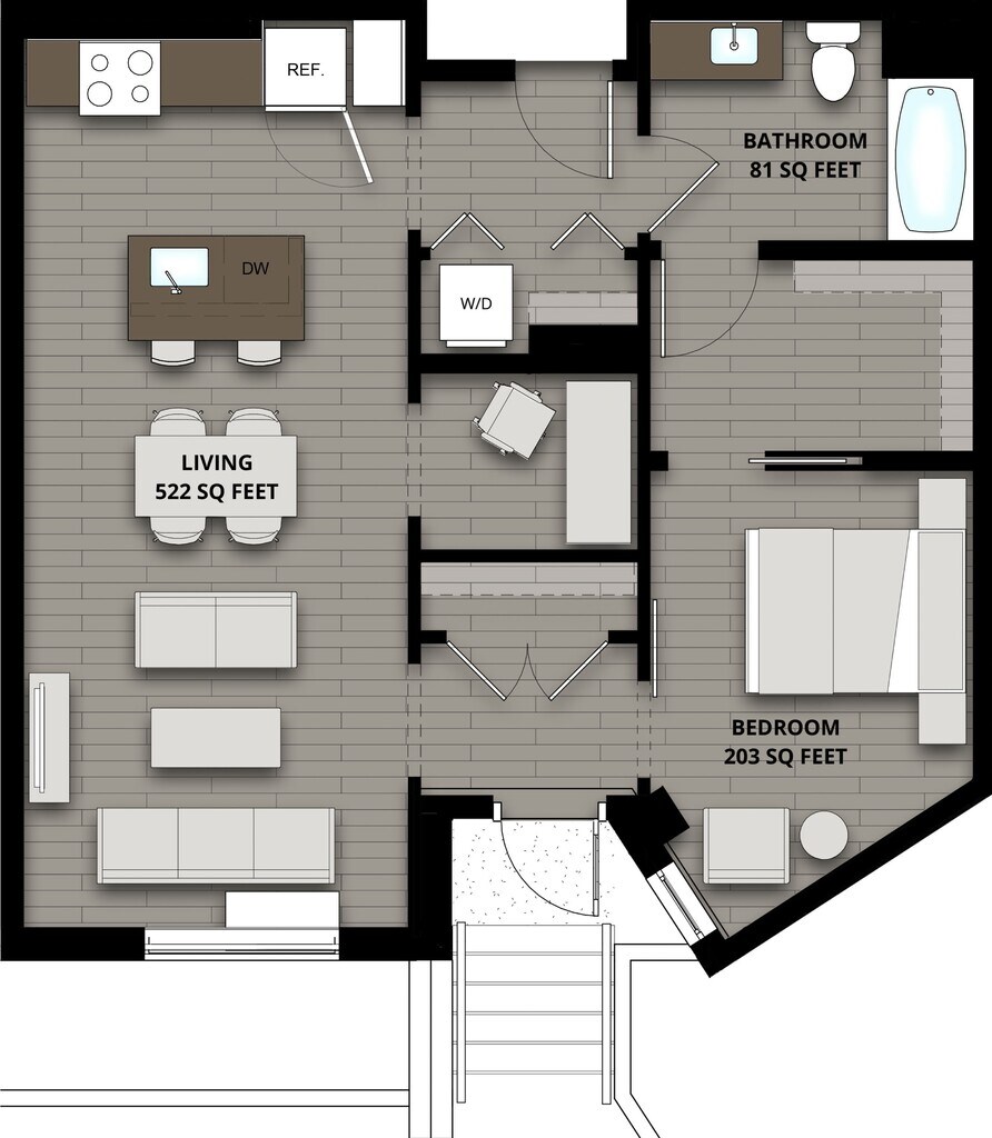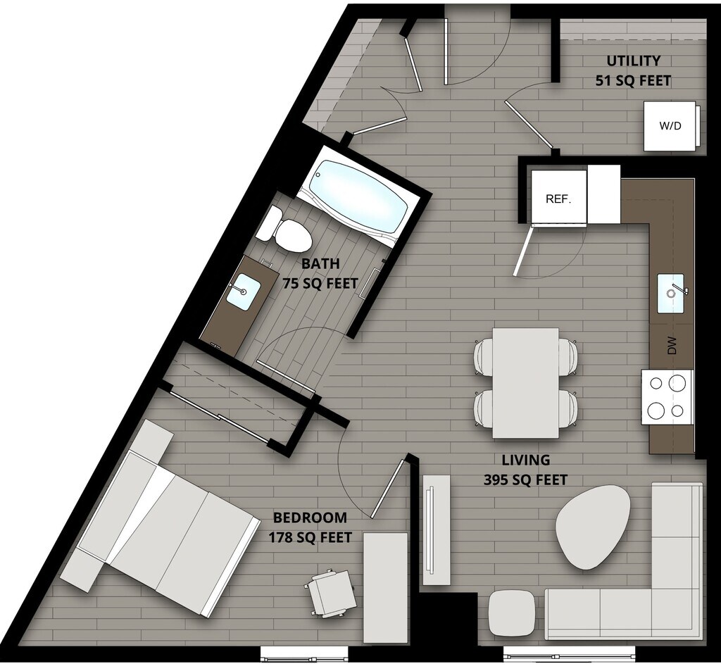 W: Studio A - Floorplan 1 Apartment Unit: 510-WApartment Model: W: Studio A$1,615Studio, 1 Bath, 493 sq ftAvailable December 23, 2025E: Studio B