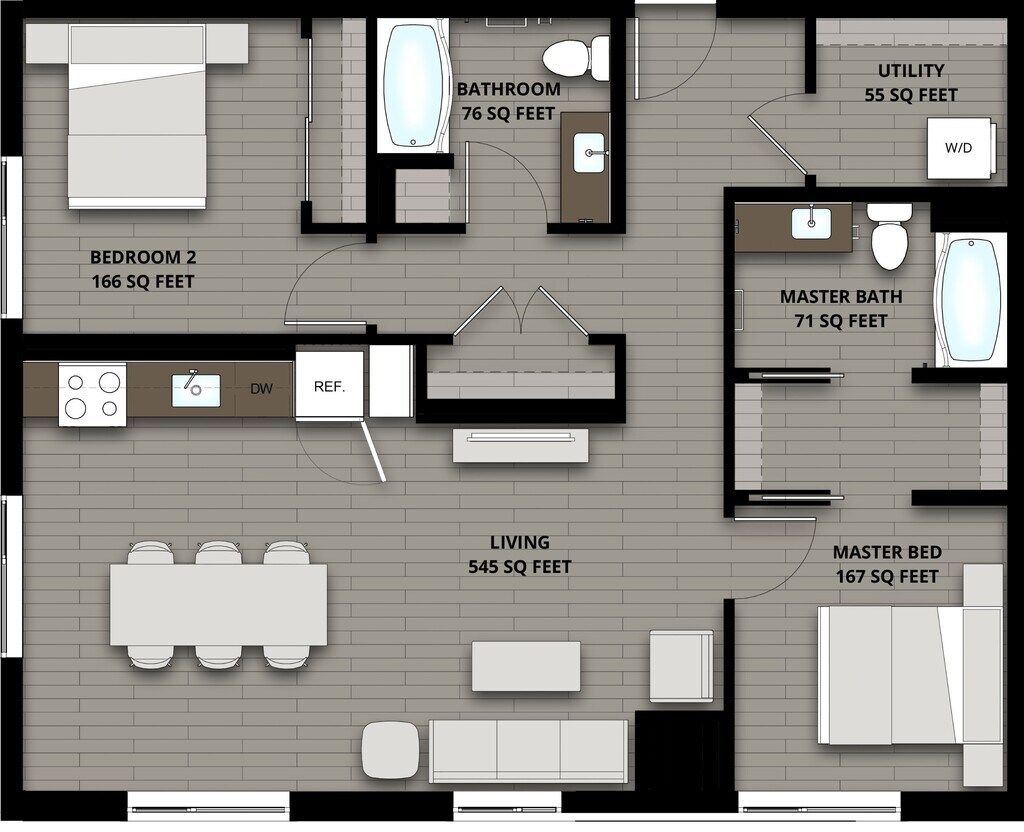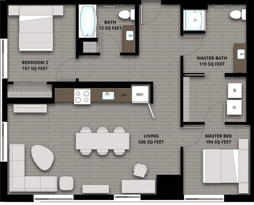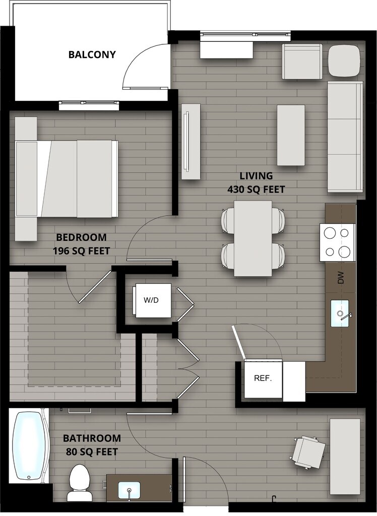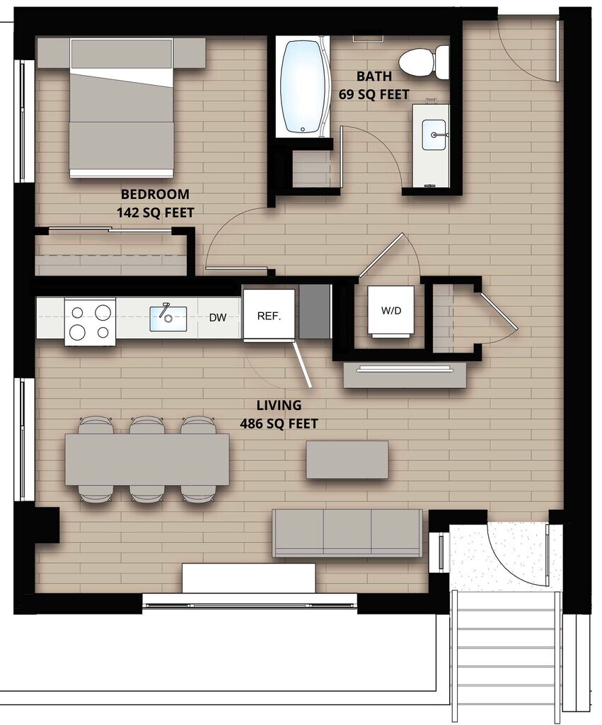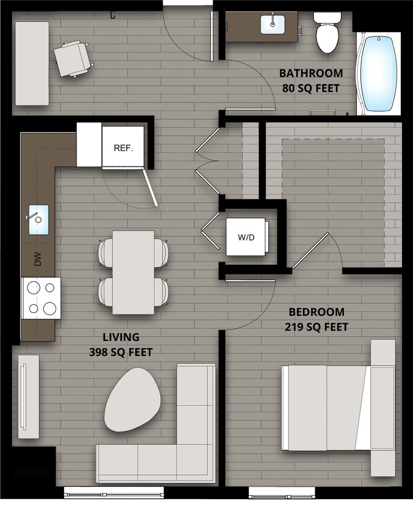 Apartment Model: W: Studio DCall For RatesStudio, 1 Bath, 561 sq ftUnavailable![]()