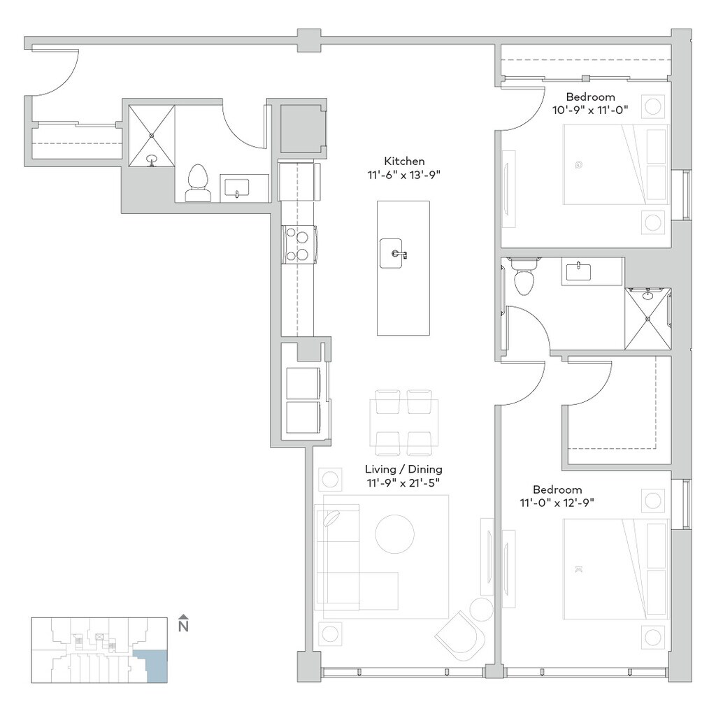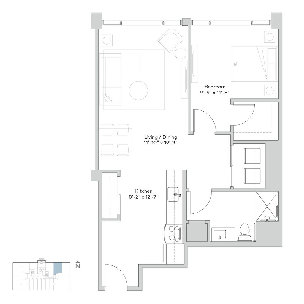 1 Bed, 1 Bath, 708 sq ftModel Gallery