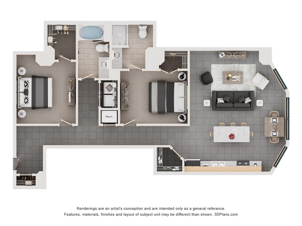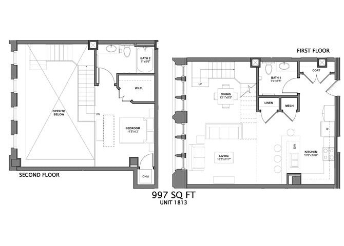 1 Bed, 1 Bath, 734 sq ftModel Gallery