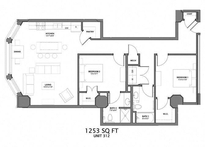 1 Bed, 1 Bath, 754 sq ftAvailable NowModel Gallery