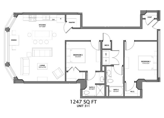 1 Bed, 1 Bath, 732 sq ftAvailable NowModel Gallery