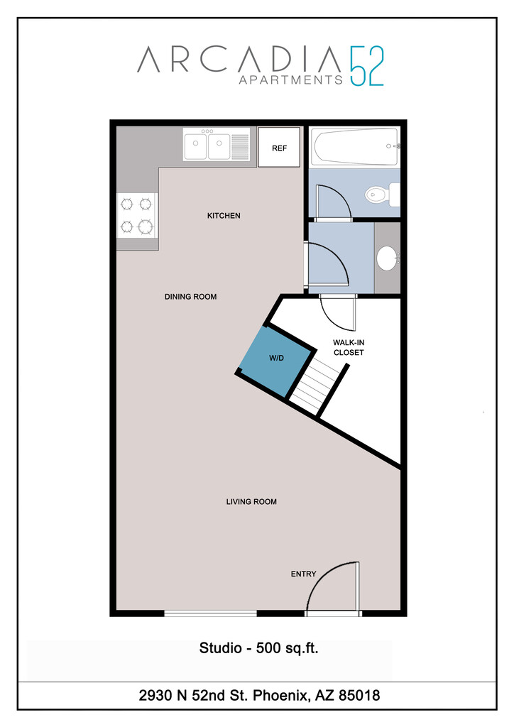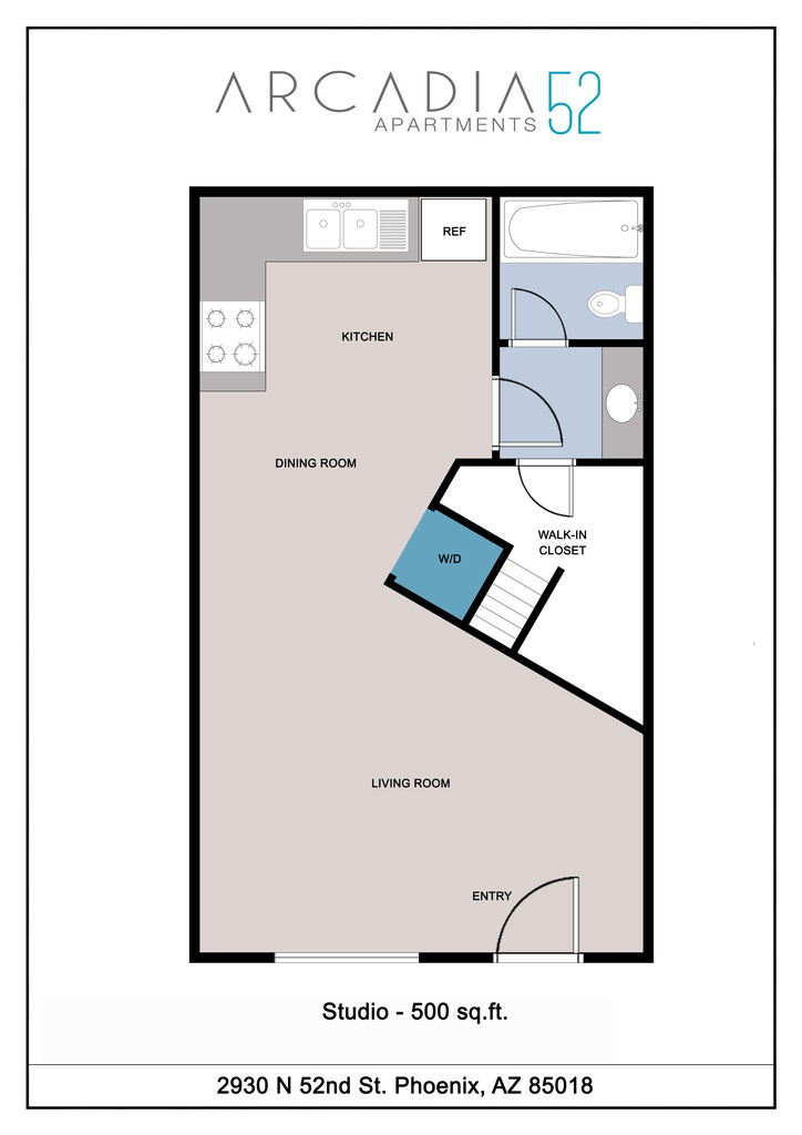 Arcadia 52 is located at 2930 N 52nd St near the East Phoenix area of Phoenix, AZ