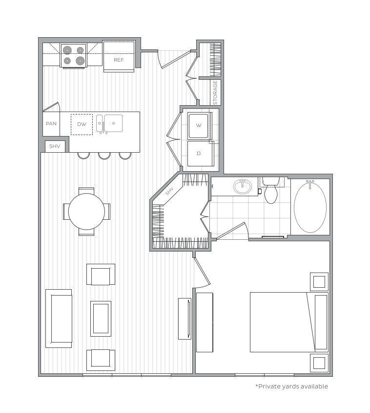 Apartment Model: A1From $1,6281 Bedroom, 1 Bath, 691 sq ftAvailable Now![]()