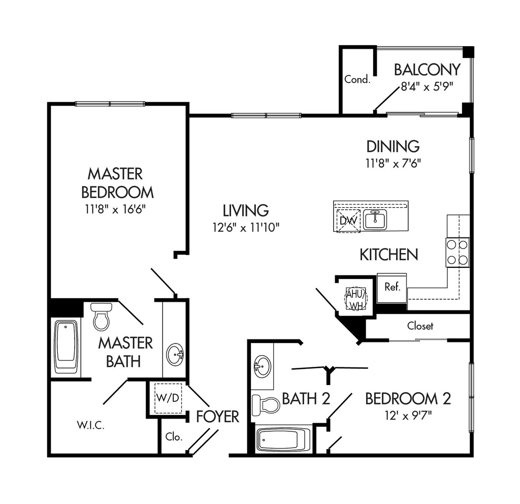 2 Beds, 2 Baths, 1117 sq ftAvailable NowModel Gallery