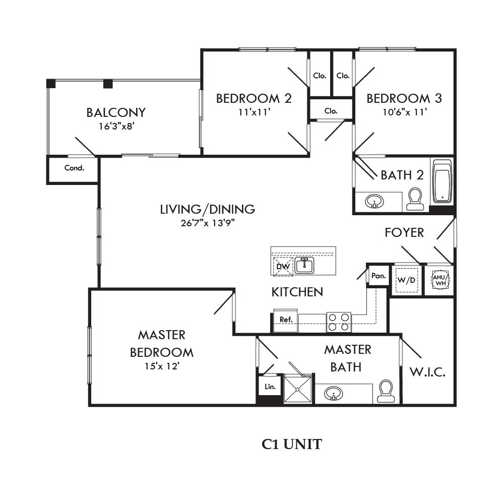 1 Bed, 1 Bath, 953 sq ftLargest 1 BedroomThis is the largest 1 Bedroom at this PropertyModel Gallery