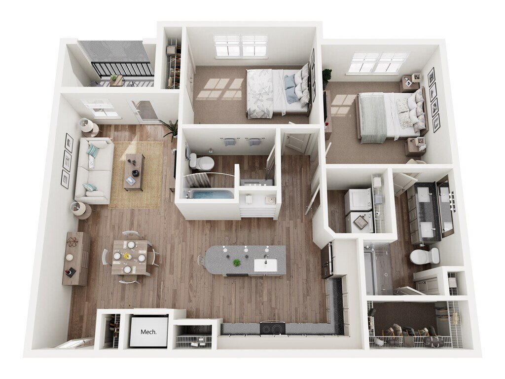 2 Beds, 2 Baths, up to 1246 sq ftAvailable NowModel Gallery