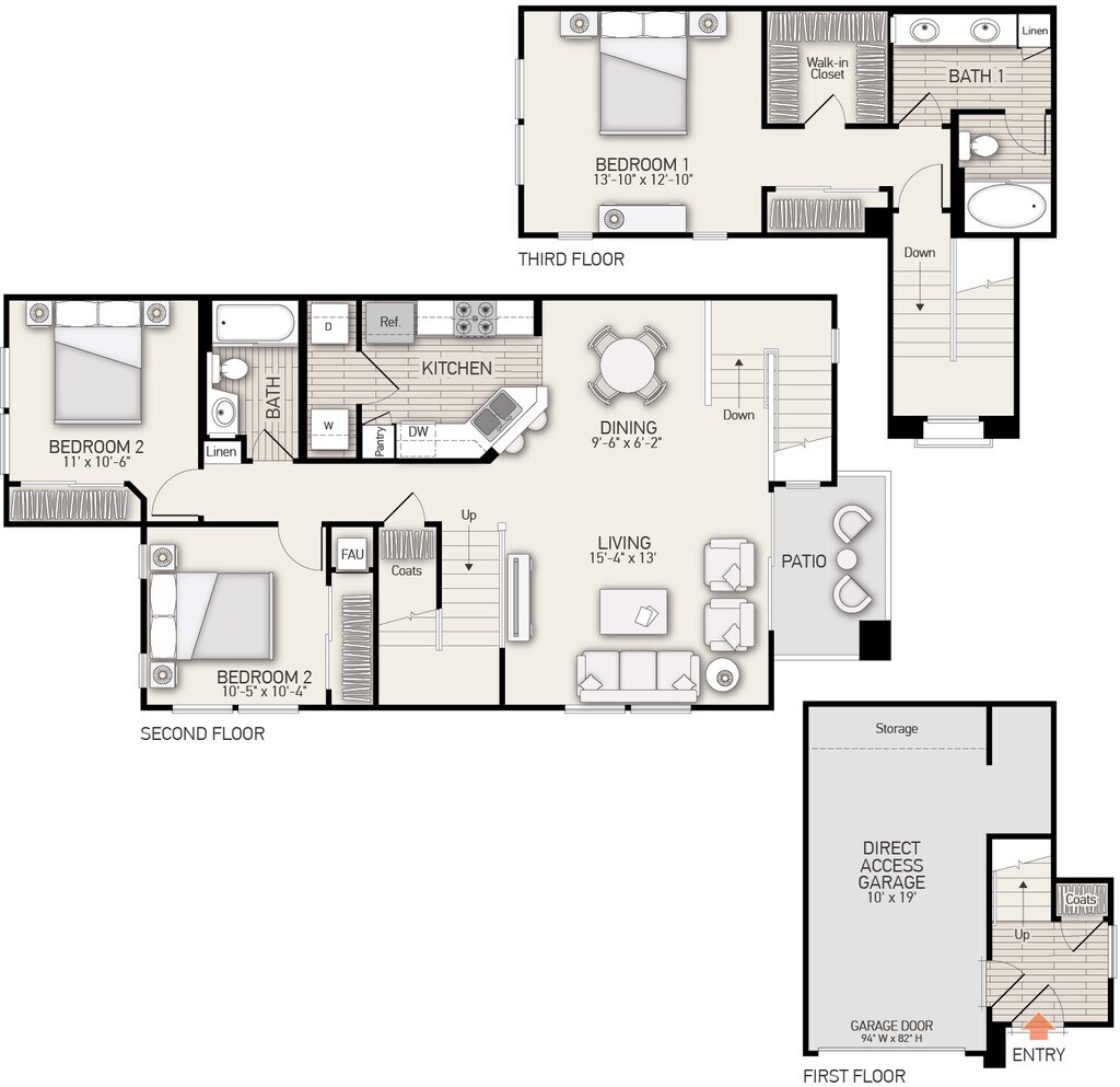 Plan B - Floorplan 1 Apartment Unit: 137Apartment Model: Plan BFrom $2,7351 Bedroom, 1 Bath, 765 sq ftAvailable December 20, 20252 Bedrooms
